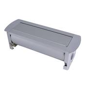 Trappe amovible rotative, Ouverture manuelle, En aluminium et ABS, Finition silver, équipé d’2 secteur NF 230V, 1 Double chargeur USB type A, 1 USB A Datas 3.0, 1 RJ45 Cat6A, 1 Mini Jack 3.5 stéréo, câblé 2m en fiches mâles, pour connecter ou alimenter vos périphériques mobiles directement sur votre bureau.