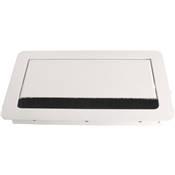 Boitier de connexion à encastrer, En acier et aluminium, Trappe amovible, Ouverture manuelle, équipé d’1 secteur NF 230V, - Double chargeur USB A+C 4.2A, 1 HDMI 2.0, Finition Blanche, câblé 5m en fiches mâles, pour connecter ou alimenter vos périphériques mobiles directement sur votre bureau.