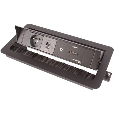• Boitier de Table Encastrable Multifonctions BTU Noir : Secteur, Chargeur, HDMI, Jack 3,5 st 2 m