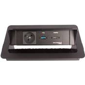 • Boitier de Table Encastrable Multifonctions BTU Noir : Secteur, HDMI, USB 5 m