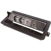 • Boitier de Table Encastrable Multifonctions BTU Noir : 2 Secteurs, Chargeur, RJ45 2 m