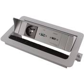 • Boitier de Table Encastrable Multifonctions BTU Silver : Secteur, HDMI, USB 2 m