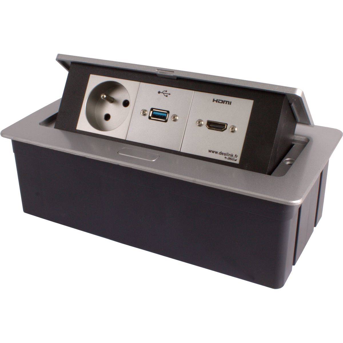 • Boitier de Table Encastrable Multifonctions BT45 Silver : Secteur, HDMI, USB 2 m