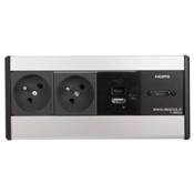 • Boitier de Table Saillie Multifonctions Type BTS Alu : 2 Secteurs, Chargeur, HDMI 2 m