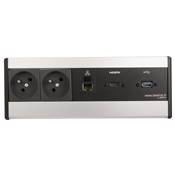 • Boitier de Table Saillie Multifonctions Type BTS Alu : 2 Secteurs, HDMI, RJ45, USB 2 m