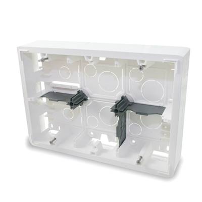 Boitier Saillie, capacité 6 postes, Finition blanche, permettant d’installer de l’appareillage électrique ou audiovisuel au standard 45 tels que les plastrons ASG des séries P et PML, et par extension, tout matériel compatible avec le standard Mosaic Legrand. Montage possible sur tout type de mur ou de paroi : Plaques de plâtre, Contreplaqué, Bois, Tôle, Carreaux de plâtre, Carrelage, Parpaing, brique, etc… S’utilise obligatoirement avec un support métallique SM6 et un enjoliveur P6 sauf en cas d’intégration d’un plastron ASG PML6.