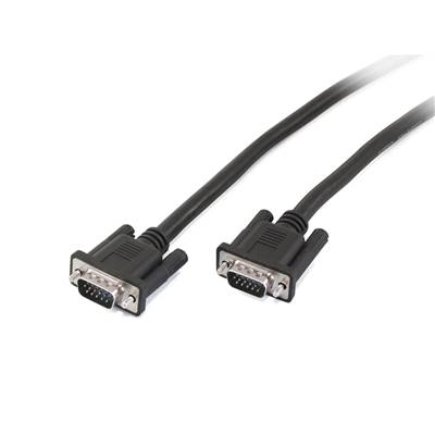 Cordon VGA, Connecteurs Haute Densité 15 broches, Full Pin 3 mini-coaxes + 9 conducteurs, 28 AWG, Double blindage, Molettes de verrouillage, Mâle / Mâle, Gaine noire, Longueur 1m, permettant la transmission d’une vidéo analogique au formats 4/3 VGA, SVGA, XGA et UXGA ou au format 16/9 WXGA et Full HD, entre appareils munis d’un connecteur HD15 (D-Sub).