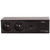 • Réglette de connexion Multifonctions BCDA Noir : 2 Secteurs, Chargeur, HDMI 2 m