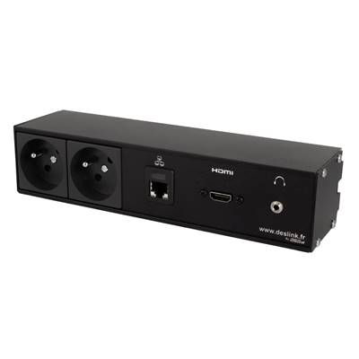 • Réglette de connexion Multifonctions BCDA Noir : 2 Secteurs, HDMI, RJ45, jack 3,5 st 5 m